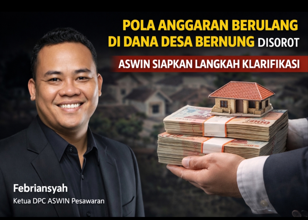 Pesawaran, Lampung — Aliran penggunaan Dana Desa Bernung, Kecamatan Gedong Tataan, untuk tahun anggaran 2024 hingga 2025 kini memasuki fase pendalaman oleh Dewan Pimpinan Cabang Asosiasi Wartawan Internasional (DPC ASWIN) Kabupaten Pesawaran. Penelusuran awal berbasis dokumen terbuka mengarah pada satu benang merah: pola penganggaran yang muncul berulang dalam satu periode, dengan nilai yang tidak selalu konsisten.