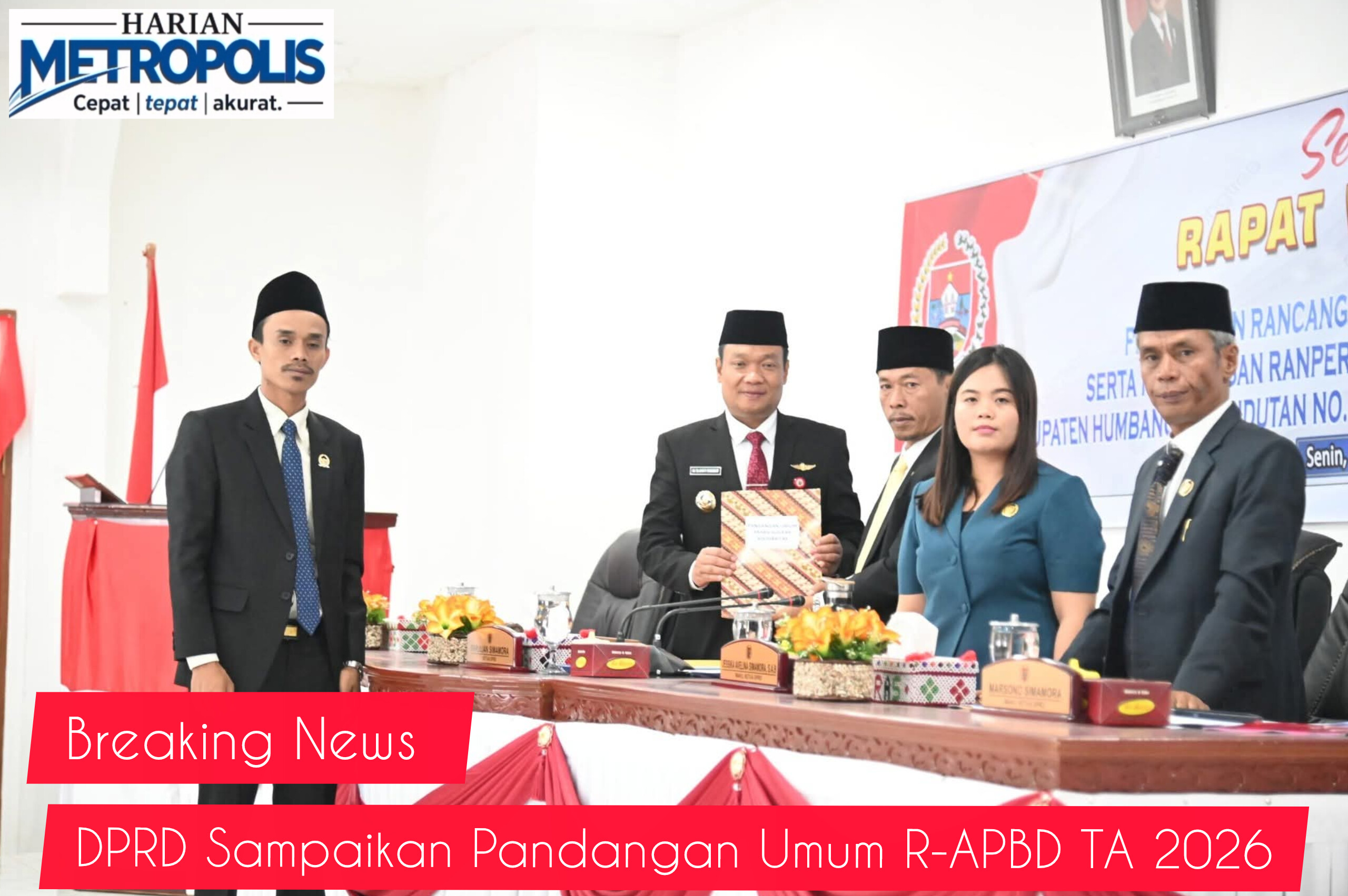 Lima dari enam fraksi DPRD Kabupaten Humbang Hasundutan menyampaikan Pemandangan Umum Fraksi Atas Nota Pengantar Bupati Tentang R.APBD T.A. 2026 Dan Ranperda Tentang Perubahan Atas Perda No. 1 Tahun 2024 Tentang Pajak Daerah dan Retribusi Daerah pada Paripurna DPRD di Ruang Paripurna, Rabu 5 Nopember 2025.