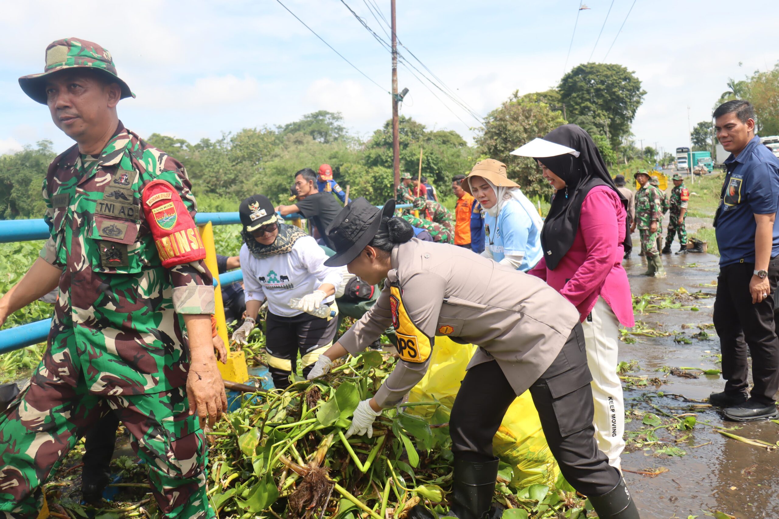 Kapolres Lampung Timur AKBP Heti Patmawati menyampaikan bahwa kegiatan gotong royong ini merupakan bentuk kepedulian bersama terhadap kebersihan lingkungan sekaligus langkah nyata dalam upaya pencegahan banjir.