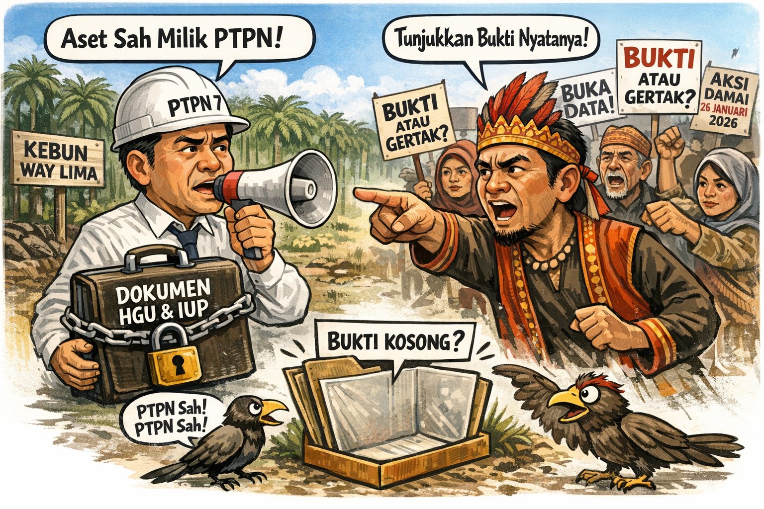 PESAWARAN — Pernyataan resmi PTPN I Regional 7 yang menegaskan legalitas aset Kebun Karet Way Lima kembali mendapat sorotan dari masyarakat adat di wilayah tersebut. Mereka menilai, penegasan sepihak melalui rilis pernyataan belum cukup menjawab persoalan di lapangan tanpa pembuktian langsung di hadapan masyarakat.