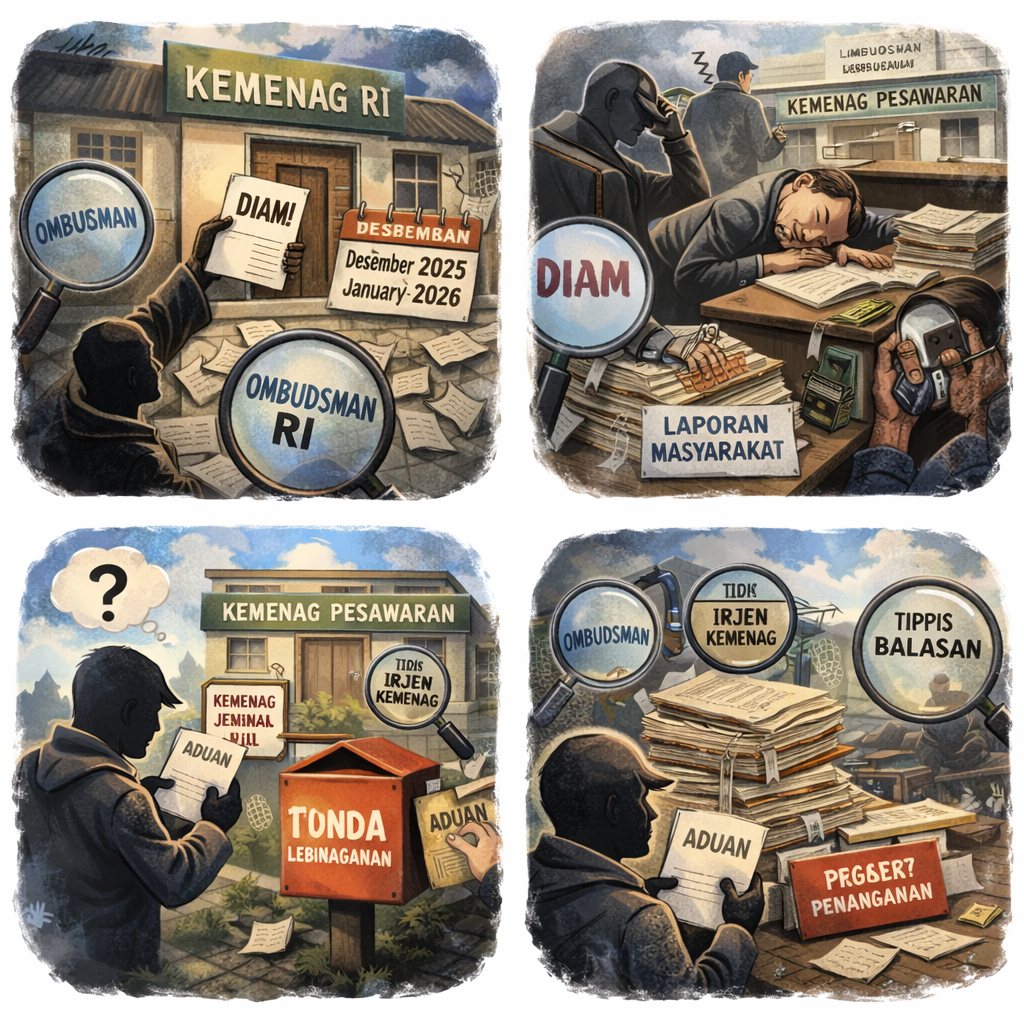 PESAWARAN — Dugaan maladministrasi serius menyeret Kementerian Agama Kabupaten Pesawaran setelah seorang warga melayangkan pengaduan resmi ke Ombudsman Republik Indonesia Perwakilan Provinsi Lampung, dengan tembusan ke Ombudsman RI di Jakarta, serta Inspektorat Jenderal Kementerian Agama Republik Indonesia.