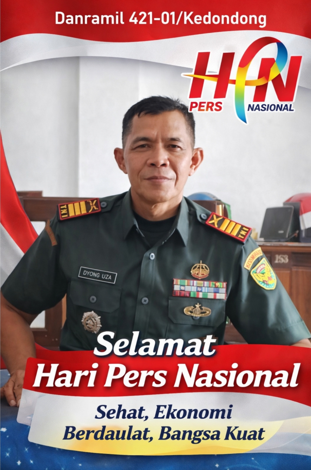 Kedondong —Dalam rangka memperingati Hari Pers Nasional (HPN), Danramil 421-01/Kedondong, Kapten Oyong Liza, menyampaikan ucapan selamat serta penghargaan kepada seluruh insan pers di Indonesia atas dedikasi dan perannya dalam pembangunan bangsa.
