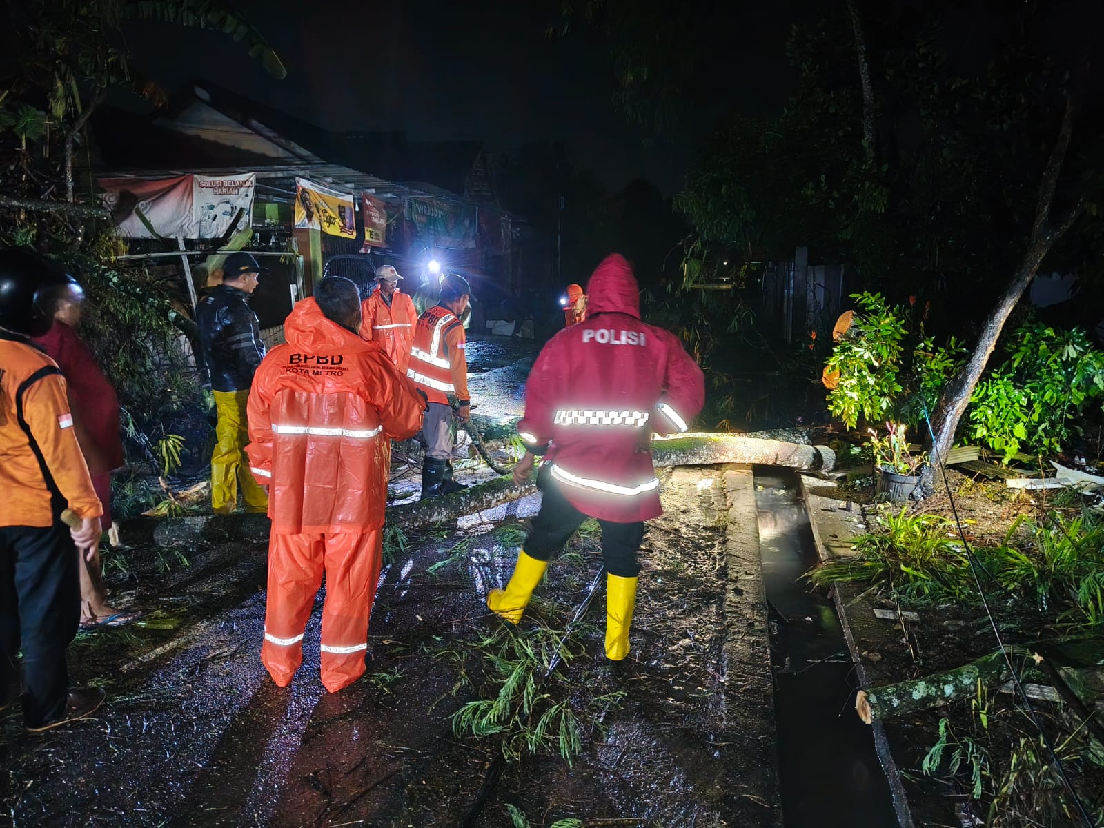 Patroli siaga bencana difokuskan di Jalan Bagan Siapi-api, RT 25 RW 06, Kelurahan Ganjar Asri, Kecamatan Metro Barat, Kota Metro. Tim Siaga Bencana Polres Metro Lampung bergerak bersama BPBD Kota Metro serta dibantu warga setempat untuk menangani pohon tumbang yang berpotensi membahayakan keselamatan masyarakat.