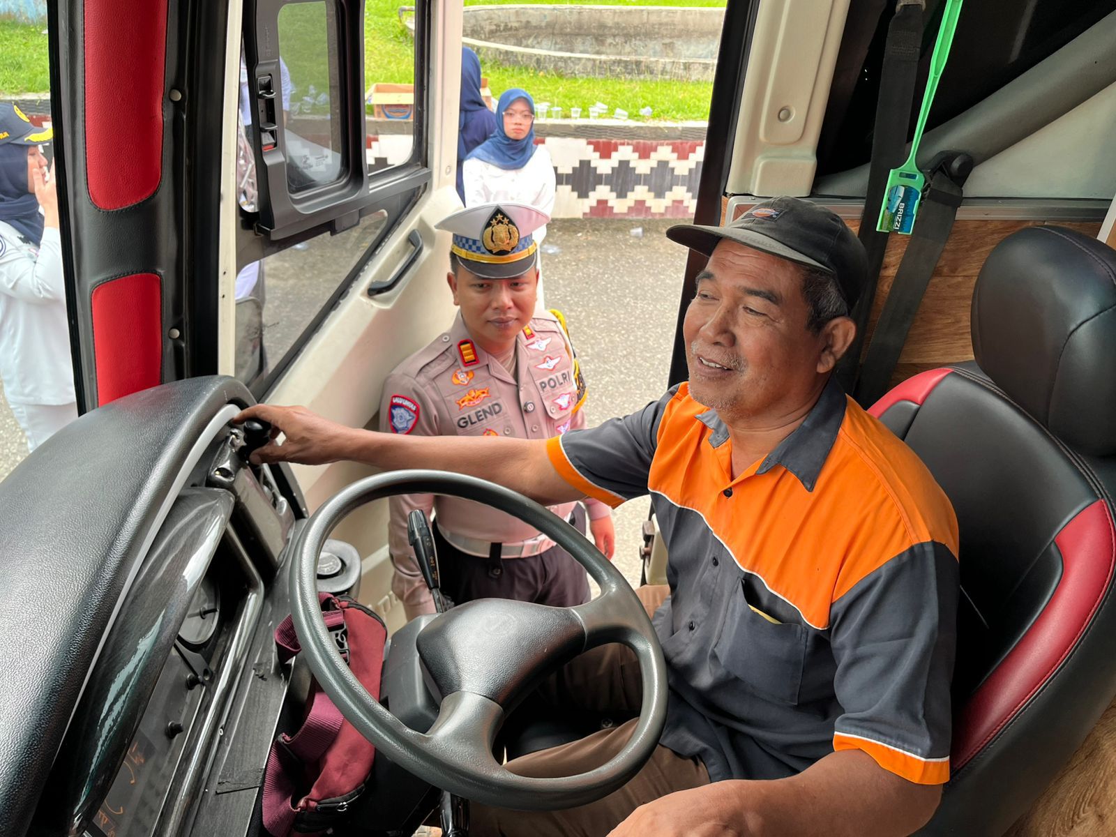 Selain pemeriksaan kendaraan, petugas juga memberikan imbauan secara humanis kepada para pengemudi agar selalu mengutamakan keselamatan penumpang dan mematuhi peraturan lalu lintas.