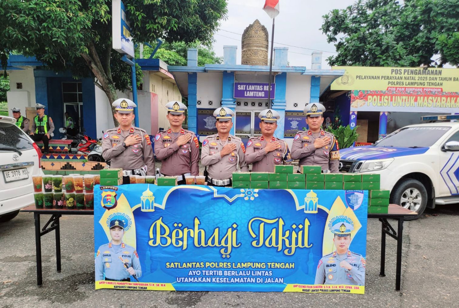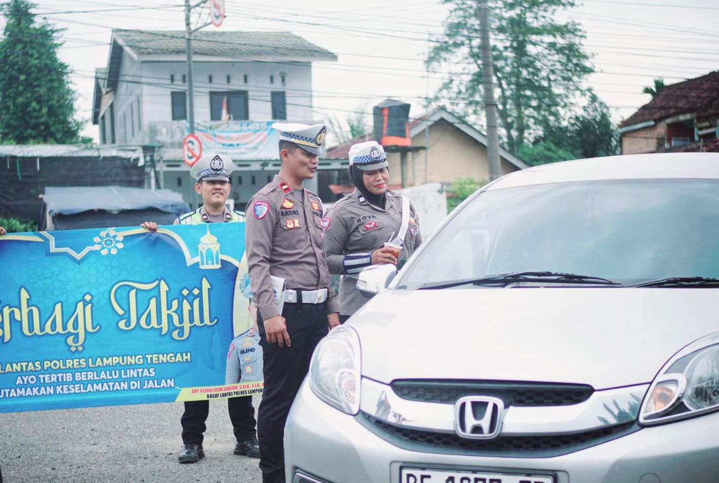 Di tengah ramainya kendaraan menjelang waktu berbuka puasa, para personel Satlantas Polres Lampung Tengah terlihat berdiri di tepi jalan dengan senyum ramah menyapa para pengguna jalan.